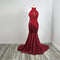 Elegant Dark Red Halter Lace Mermaid Prom Evening Dress XH1013