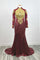 Burgundy Gold Lace Formal Prom Dress with Long Sleeves XH1023