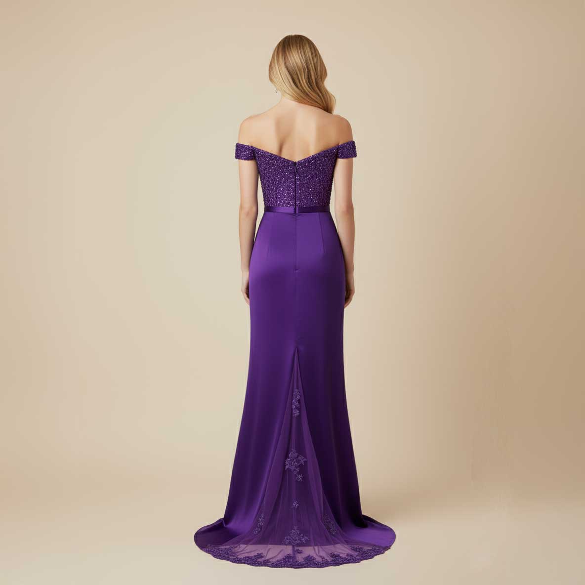 Purple Off the Shoulder Lace Sleek Prom Evening Dress XH1027