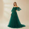 Hunter Green Lace Tulle Formal Prom Dress with Off Shoulder Sleeves XH1068
