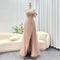 This Dusty Pink One Shoulder Sparkly Formal Evening Prom Dress features a side slit for added elegance. Expertly crafted, this dress is perfect for any formal occasion. The dusty pink color adds a touch of femininity, while the sparkly fabric adds a glamorous touch. Make a statement at your next event with this must-have dress.
