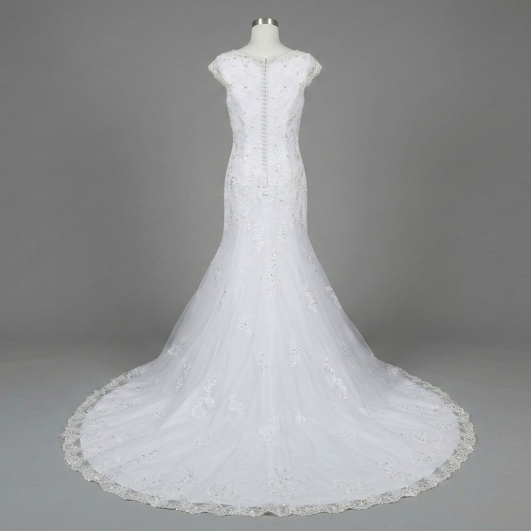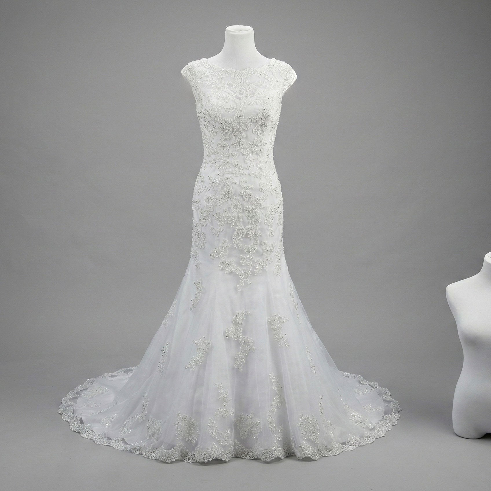 White Lace Fit and Flare Wedding Dress