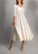 Expertly designed for your special day, this elegant wedding dress exudes sophistication and grace. With a flattering v neckline and 3/4 sleeves, it offers the perfect blend of modern and classic. Its tea length and simple design make it ideal for a wedding reception or a court informal wedding.